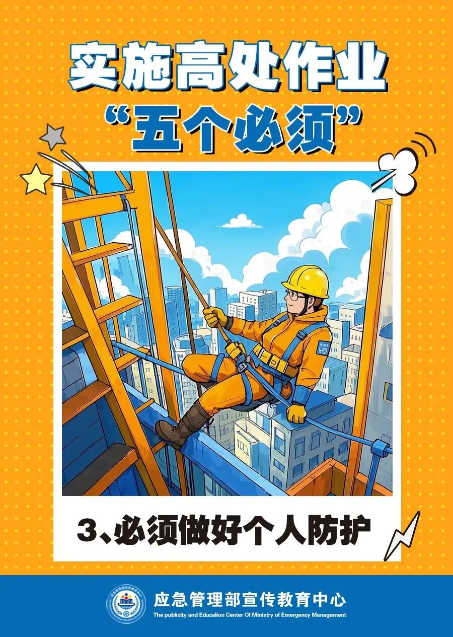 在企业生产过程中 经常会遇到高处作业情况 在高处作业时 作业人员活动范围小 四周临空、垂直交叉作业 作业环境复杂 稍有疏忽就有可能发生事故 根据 《特种作业人员安全技术培训考核管理规定》 高处作业 指专门或经常 在坠落高度基准面2米及以上 有可能坠落的高处 进行的作业 具体包括以下两种 1、登高架设作业:指在高处从事脚手架、跨越架架设或拆除的作业。 2、高处安装、维护、拆除作业指在高处从事安装、维护、拆除的作业。适用于利用专用设备进行建筑物内外装饰、清洁、装修,电力、电信等线路架设,高处管道架设,小型空调高处安装、维修,各种设备设施与户外广告设施的安装、检修、维护以及在高处从事建筑物、设备设施拆除作业。 高处作业 属于特种作业范畴 从业人员除了做好安全防范措施 必须经专门的安全技术培训 并考核合格 取得特种作业操作证后 方可上岗作业 施工人员要按照相关规范作业 正确佩戴防坠落护具 做好防护措施 避免意外事故的发生 高空作业 “五个必须”要做到 来源:中国安全生产网,应急管理部